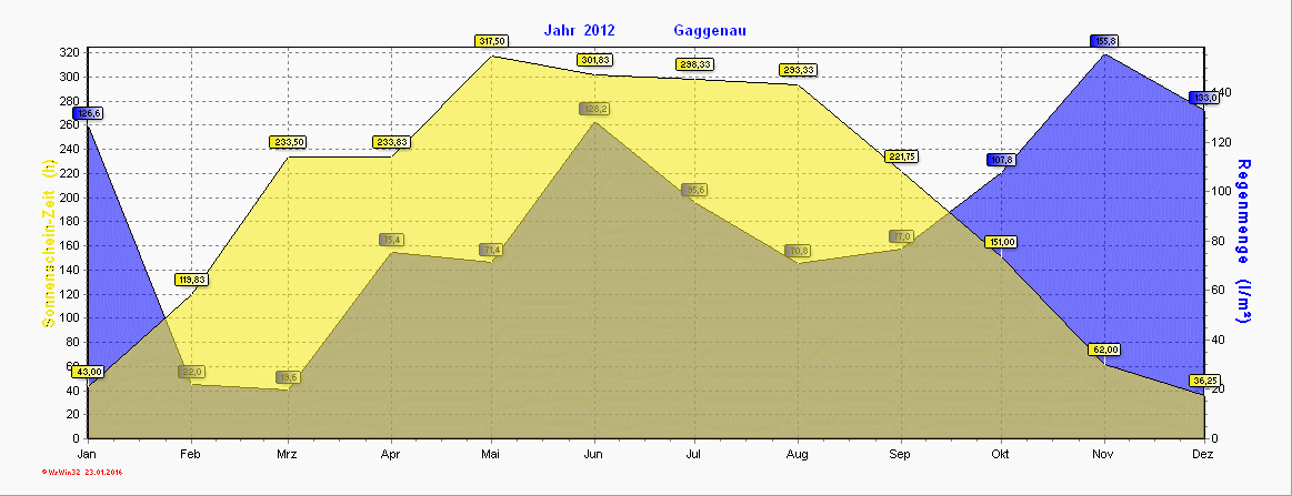 Januar 2012: Temperatur Durchschnitt 4,3°C °C / Regenmenge 126,6 l/m²