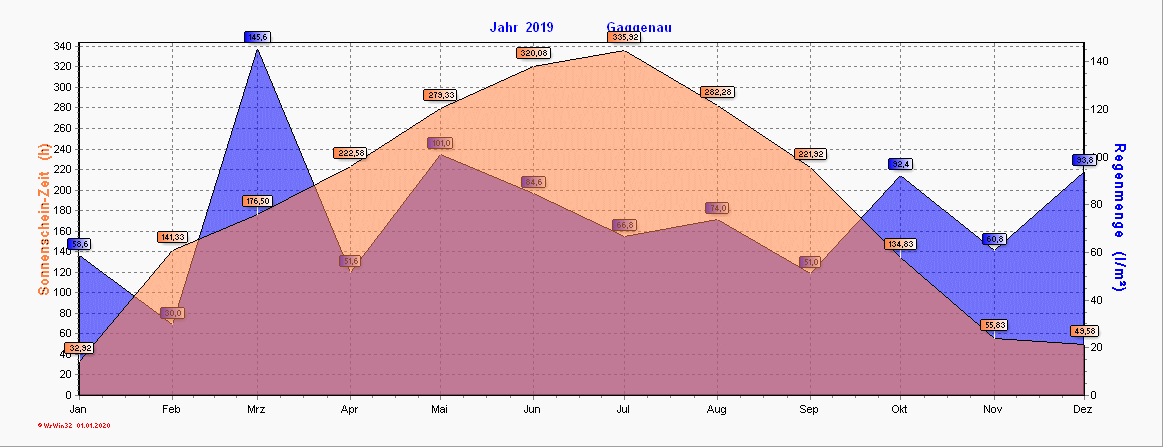 dominiert wurde die Wetterlage durch anhaltende Tiefdruckgebiete welche viele Niederschläge oft auch als Schneefälle bis in die Niederungen mit sich brachten. Die Durchschnittstemperatur gemessen an der Wetterstation Ottenau lag bei winterlichen 2,8°C und war damit jahreszeitlich entsprechend angemessen. Die im Eingang beschriebene Wetterlage sorgte gerade im Alpenraum für extreme Schneemassen. In den Medien wurde vielerorts von chaotischen Wetterverhältnissen berichtet. Einsatzkräfte der Bundeswehr, freiwillige Helfer waren nahezu rund um die Uhr im Einsatz, um einsturzgefährdete Dächer von den Schneemassen zu befreien. Auch in den Höhenlagen des Nordschwarzwald´s waren Dauerschneefälle zu vermelden, immer wieder wurden Straßensperren aufgrund Schneebruchs in den regionalen Nachrichten bekannt gegeben. An manchen Tagen war kein Durchkommen in Richtung Mummelsee oder anderen Regionen ohne entsprechende Winterausrüstung möglich. Erst in der zweiten Monatshälfte entspannte sich die winterliche Wetterlage etwas, dennoch aufgrund des leichten Hochdruckeinflusses waren es nun winterlich, kalte und sternenklare Nächte welche für Temperaturen jenseits der 0°C Marke sorgten. So wurde auch erst in der letzten Dekade sowohl der Minimalwert als auch der Maximalwert des Monats aufgezeichnet. Am 22.(2.40Uhr) lag der Minimalwert bei -6,8°C, getoppt wurde dieser Wert lediglich vom +5cm Bodensensor welcher nahezu zeitgleich -9,4°C aufzeichnete. Der Maximalwert wurde am 27.(13.10Uhr) mit 10,7°C gemessen. Der Gesamtniederschlag belief sich auf 58,6 l/m² bei sechzehn Niederschlagstagen. Insgesamt betrachtet war der Januar kalt und örtlich niederschlagsreich bei wenigen Sonnenscheinstunden.